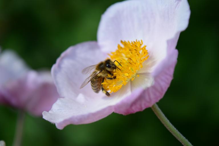 Keywords: anemone anemone nemorosa bee blossom bloom white close collect honey sprinkle pollen hungry food