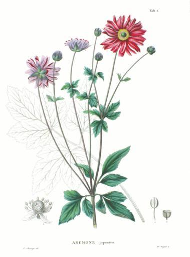 Keywords: Anemone japonica SZ5.png Plate from book Flora Japonica Sectio Prima Tafelband 1870 Philipp Franz von Siebold and Joseph Gerhard Zuccarini see http //www biolib de PD-old Anemone × hybrida - botanical illustrations Flora Japonica