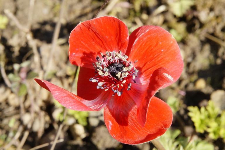 Keywords: anemone red blossom bloom flower beautiful wild flower close garden spring bloom