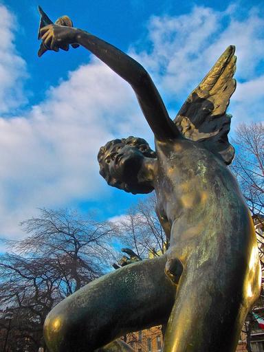 Keywords: angel cherub wings blue sky mariatorget stockholm