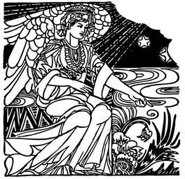 Keywords: angel goddess female water grass scenery scenic garden black and white young mythical character sitting