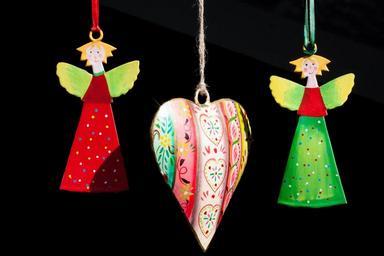 Keywords: angel heart painted spring angel spring cheerful serene colorful green red pink yellow hand labor arts crafts metal suspended hanging float symbolic love connectedness loving
