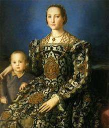 | Keywords: Angelo Bronzino 038.jpg Assessments 1 Eleanor of Toledo Bronzino - Eleonora di Toledo col figlio Giovanni - Google Art Project jpg Artwork creator Agnolo Bronzino Portret van Eleonora van Toledo hertogin van Florentië en haar seun Giovanni de Porträt der Eleonora di Toledo und ihres Sohnes Giovanni 1545 oil on wood cm 115 96 Institution Uffizi Florence accession number object history credit line de Auftraggeber Cosimo I de' Medici Porträt seiner Gattin und seines Sohnes vgl Prager Version des Gemäldes weitere Varianten in Detroit Cincinnati mit Sohn Francesco de' Medici The Yorck Project 10 000 Meisterwerke der Malerei DVD-ROM 2002 ISBN 3936122202 Distributed by DIRECTMEDIA Publishing GmbH http //mail wikipedia org/pipermail/wikide-l/2005-April/012195 html <gallery> File Bronzino - Eleonora di Toledo col figlio Giovanni - Google Art Project jpg File Leonor de Villafranca jpg File Angelo Bronzino 039 jpg </gallery> PD-old-100 PD-Art-YorckProject Eleanor of Toledo with her son Giovanni de' Medici by Agnolo Bronzino Bronzino Portrait der Eleonora di Toledo und ihres Sohnes Giovanni |