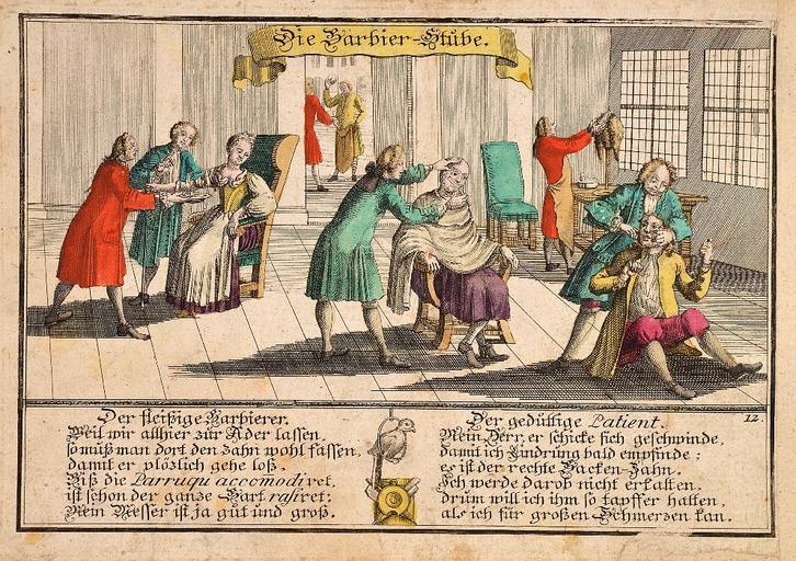 | Keywords: Angenehme Bilderlust c1760 12.jpg  Die Barbier-Stube; Tafel aus Anganehme Bilder-Lust der lieben Jugend zur Ergötzung also eingerichtet Nürnberg Monath o J ca 1760 http //www zisska de/ Zisska Schauer ~ 1760 Creator Unknown <gallery> File Angenehme Bilderlust c1760 01 jpg File Angenehme Bilderlust c1760 05 jpg File Angenehme Bilderlust c1760 06 jpg File Angenehme Bilderlust c1760 07 jpg File Angenehme Bilderlust c1760 08 jpg File Angenehme Bilderlust c1760 12 jpg File Angenehme Bilderlust c1760 15 jpg File Angenehme Bilderlust c1760 21 jpg File Angenehme Bilderlust c1760 23 jpg </gallery> PD-old-100 Images from Zisska Schauer 1760s engravings Barbers in art |