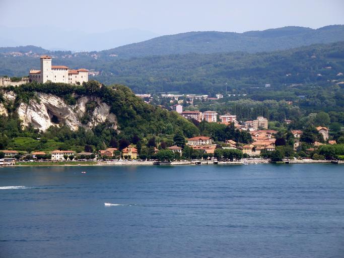 | Keywords: Angera Rocca 27.JPG  fr Forteresse d'Angera en italien Rocca di Angera juchée sur son éperon rocheux surplombant la localité italienne d'Angera dans la province de Varèse sur la rive orientale lombarde du lac Majeur Flancs nord à gauche et occidental à droite du château Vue prise au téléobjectif depuis le socle du colosse de Saint-Charles-Borromée en italien colosso di San Carlo Borromeo ou plus familièrement le San Carlone statue géante située en contre-haut et non loin au nord-ouest de la ville d'Arona sur la rive opposée piémontaise du lac Majeur à plus de 2km de distance 2012-07-08 own Torsade de Pointes cc-zero Uploaded with UploadWizard Rocca di Angera |