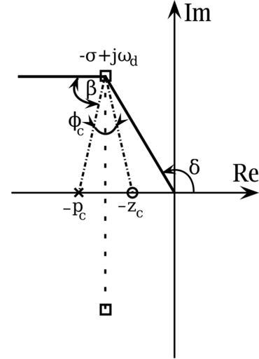 Keywords: Angle bisection method.svg The angle bisection method in Control Theory for calculating optimal lead/lag network Own work using Inkscape 2007-06-21 Mintz_l PD Inkscape Cybernetics