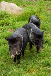 Keywords: animal black boar grass green hog mammal collared peccary pig standing walking wild wildlife pigs three