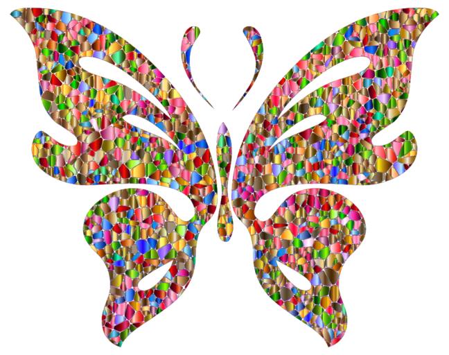 Keywords: animal butterfly clips flying insect wings colorful prismatic chromatic rainbow iridescent tiles tiled voronoi shiny metallic abstract geometric art