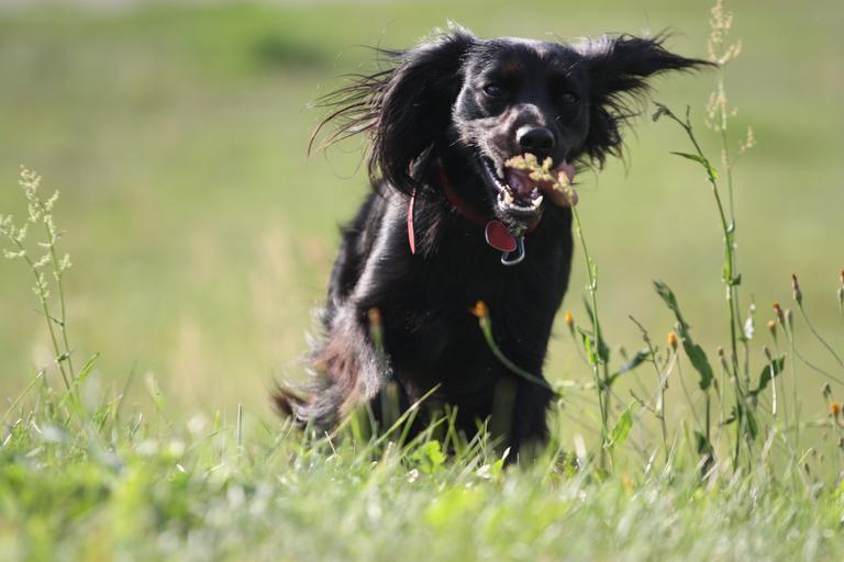 Keywords: animal dog meadow jogging grass spacer teeth green