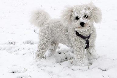 Keywords: animal dog snow winter white bichon frise small dog bichon emotion dog in the snow