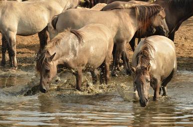 Keywords: animal mammal horse herd brown water drinking