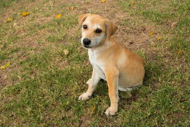 Keywords: animal pet cute big brown face smiling training bull background puppy domestic canine collar purebred terrier
