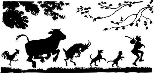 Keywords: animals cat man silhouette dog cow goat chicken jumping following leadership skipping running active person
