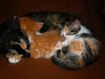 Keywords: animals cats kittens sweet colorful spotted rest sleeping cat family