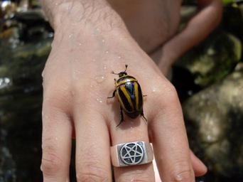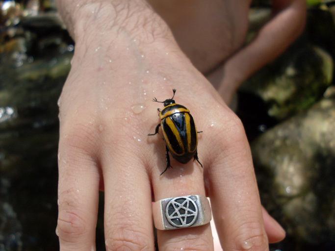 Keywords: animals nature life hand yellow black ring stripes