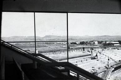 Keywords: salt araştırma saltaraştırma salt research saltresearch salt online saltonline ankara 19 mayıs stadyumu ankara19mayısstadyumu 19 mayıs stadyumu 19mayısstadyumu 19 mayıs stadı 19mayısstadı stadyum i̇nşaatı stadyuminşaatı stadyum ankara 19 mayıs stadium ankara19mayısstadium construction of stadium constructionofstadium stadium paolo vietti-violi paoloviettivioli balkan olimpiyatları balkanolimpiyatları balkan olympics balkanolympics 1933 ankara blackandwhite black and white Ankara 19 Mayıs Stadium, designed by Paolo Vietti-Violi who is also the architect of İnönü Stadium, opened in 1936. The structure is symbolic for the Early Republican Period in a functional, socio-cultural way, for it was the first project of its kind in Turkey. The initial international competition for the project was for a sports complex and the winning project of Vietti-Violi proposed not only a stadium, but a group of buildings consisting of an athletics stadium, a hippodrome, a velodrome, training areas for team sports, tennis courts, a gym, two swimming pools, changing rooms, club buildings, a polygon and open-air areas for the audience. The project was designed for the Balkan Olympics with a capacity of 25,000. In 2008 discussions began to replace the stadium with a larger one that would be able host 40,000, or with a large park and open-air spaces. Today, the future of the stadium remains uncertain. SALT Research, Ali Saim Ülgen Archive İnönü Stadı’nın da mimarı olan Paolo Vietti-Violi tarafından tasarlanan ve 1936’da açılan Ankara 19 Mayıs Stadyumu, hem sosyo-kültürel hem de fonksiyonel açıdan Erken Cumhuriyet Dönemi için sembolik bir önem taşır. 1933’te, Ankara’da kapsamlı bir spor tesisi yapılması için uluslararası bir yarışma düzenlendi. Vietti-Violi’nin birinci seçilen projesi yalnızca bir stadyum değil, atletizm stadyumu, at yarışları ve askeri yürüyüşler için hipodrom; velodrom, rugby, futbol, basketbol gibi takım sporları için antrenman sahaları ile tenis kortları, jimnastik salonu, iki yüzme havuzu, soyunma odaları, sporcu ve kulüp binaları, atış poligonu ve seyirciler için düzenlenen açık alanları içeren bir yapı grubuydu. Bu bağlamda Türkiye’de türünün ilk örneğiydi. Balkan Olimpiyatları için 25.000 kişi kapasiteli tasarlanan, modernist üsluba sahip stadyumun üç açık ve bir kapalı tribünü vardı. Zamanla tüm tribünlerin üstü kapatıldı ve kapasite 19.125 olarak revize edildi. 2008’de, stadın yıkılması ve yerine 40.000 kişi kapasiteli yeni bir stat ya da park ve gezi alanları inşa edilmesi tartışmaları gündeme geldi. Ancak, yapının akıbeti hakkında hâlen nihai bir karar verilmedi. SALT Araştırma, Ali Saim Ülgen Arşivi Ankara 19 Mayıs Stadium, designed by Paolo Vietti-Violi who is also the architect of İnönü Stadium, opened in 1936. The structure is symbolic for the Early Republican Period in a functional, socio-cultural way, for it was the first project of its kind in Turkey. The initial international competition for the project was for a sports complex and the winning project of Vietti-Violi proposed not only a stadium, but a group of buildings consisting of an athletics stadium, a hippodrome, a velodrome, training areas for team sports, tennis courts, a gym, two swimming pools, changing rooms, club buildings, a polygon and open-air areas for the audience. The project was designed for the Balkan Olympics with a capacity of 25,000. In 2008 discussions began to replace the stadium with a larger one that would be able host 40,000, or with a large park and open-air spaces. Today, the future of the stadium remains uncertain. SALT Research, Ali Saim Ülgen Archive İnönü Stadı’nın da mimarı olan Paolo Vietti-Violi tarafından tasarlanan ve 1936’da açılan Ankara 19 Mayıs Stadyumu, hem sosyo-kültürel hem de fonksiyonel açıdan Erken Cumhuriyet Dönemi için sembolik bir önem taşır. 1933’te, Ankara’da kapsamlı bir spor tesisi yapılması için uluslararası bir yarışma düzenlendi. Vietti-Violi’nin birinci seçilen projesi yalnızca bir stadyum değil, atletizm stadyumu, at yarışları ve askeri yürüyüşler için hipodrom; velodrom, rugby, futbol, basketbol gibi takım sporları için antrenman sahaları ile tenis kortları, jimnastik salonu, iki yüzme havuzu, soyunma odaları, sporcu ve kulüp binaları, atış poligonu ve seyirciler için düzenlenen açık alanları içeren bir yapı grubuydu. Bu bağlamda Türkiye’de türünün ilk örneğiydi. Balkan Olimpiyatları için 25.000 kişi kapasiteli tasarlanan, modernist üsluba sahip stadyumun üç açık ve bir kapalı tribünü vardı. Zamanla tüm tribünlerin üstü kapatıldı ve kapasite 19.125 olarak revize edildi. 2008’de, stadın yıkılması ve yerine 40.000 kişi kapasiteli yeni bir stat ya da park ve gezi alanları inşa edilmesi tartışmaları gündeme geldi. Ancak, yapının akıbeti hakkında hâlen nihai bir karar verilmedi. SALT Araştırma, Ali Saim Ülgen Arşivi