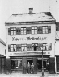 | Keywords: Ankershofen & Saam, Fürstenfeldbruck, Betriebsgebäude von 1867.jpg Karl Ankershofen Kürschnerei Federn u Bettenlager Ankershofen Fürstenfeldbruck von 1867 Das Betriebsgebäude der späteren Firma Ankershofen Saam gegründet 1856 1856 erwarb der Kürschnermeister Johann Nepomuk von Ankershofen für 700 Gulden das unter dem Namen žKürschnerhaus bekannte Gebäude in der Schöngeisinger Straße 1885 ging das Geschäft an seinen Sohn Karl über 1917 übernahm dessen Sohn Johann Nepomuk die Firma 1921 wurde das Haus umfassend modernisiert 1927 starb Johann Nepomuk an den Folgen einer Kriegsverletzung Zwei Jahre später heiratete sein Witwe Alois Saam ab jetzt hieß die Firma Ankershifen Saam Saam war zu der Zeit mit 23 Jahren Deutschlands jüngster Kürschnermeister 1954 wurde das Gebäude erweitert in der Form wie es zum 125-jährigen Jubiläum im Jahr 1981 bestand Zu der Zeit beschäftigte der Betreib 19 Mitarbeiter Seniorchef war Alois Saam Inhaber Manfred Kriegel I v Nippold Pelz International Heft 8 August 1981 1867 author PD-old <gallery>Ankershofen Saam Fürstenfeldbruck Betriebsgebäude von 1856 jpg</gallery> Furriers in Fürstenfeldbruck Ankershofen Saam Schöngeisinger Straße Fürstenfeldbruck Feathers 1856 establishments in Germany |
