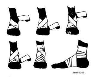 | Keywords: Ankle bandage.jpg Diagram showing how to apply a figure-eight bandage to the ankle Taken from the U S Navy Medical Training Manual 14295 titled Hospital Corpsman Revised Edition U S Navy PD-USGov-Military-Navy Ankle_bandage svg First aid diagrams Bandages |