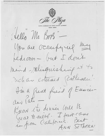 Keywords: Ann Sothern Note - NARA - 193971.tif Scope and content Note from Ann Sothern to Robert F Kennedy General notes 193971 Local identifier Kennedy Robert F Robert Francis 1925-1968 John F Kennedy Library NLJFK Columbia Point Boston MA 02125-3398 Record group Collection JFK-RFK Robert F Kennedy Papers 1937 - 06/06/1968 Record group ARC 1169 Robert F Kennedy Papers Attorney General Papers Personal Correspondence compiled 1960 - 1964 Series ARC 193954 File unit Robert F Kennedy Papers Attorney General's Files Personal Correspondence VIP 1963 - 1964 1963 - 1964 File unit ARC 193966 Variant control numbers NAIL Control Number NLK-RFK-AGFILESPERCO-VIP1963TO1964-7BBBG yes Other versions <gallery> File Ann_Sothern_Note_-_NARA_-_193971 tif tif File Ann_Sothern_Note_-_NARA_-_193971 jpg jpg </gallery> NARA-cooperation PD-USGov Documents in English NARA TIF images with categorized JPGs |