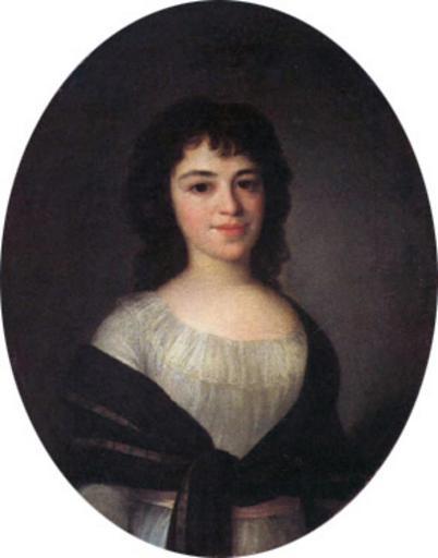 | Keywords: Anna Artiomievna Buturlina.jpg Portrait of female Anna Artiomievna Buturlina ru По т ет Анны А темьевны Во онцовой 1777-1854 в замуж Буту линой Ф С Рокотов 1735 - 1808 По т ет г Анны А темьевны Буту линой Около 1793 г Холст масло 73 х 57 овал Два па ных по т ета Рокотова - адъютанта кн Потемкина члена Коллегии иност анных дел известного библиофила г Д П Буту лина и его юной суп уги г А А Буту линой ожд Во онцовой - относятся к 1790-м годам позднему пе иоду тво чества Рокотова В них п оявились новые для художника и ха акте ные для ождавшегося в усском по т ете классицизма тенденции более ясная оп еделенная ха акте истика четкость и ст огость фо м и конту ов сде жанная цветовая гамма спокойная живописная мане а Тамбовская областная ка тинная гале ея 1793 oil unknown скан other versions PD-old-100 DEFAULTSORT 1793; Anna Artiomievna Buturlina Female portraits by Fedor Rokotov 18th-century portrait paintings location missing Anna Artiomievna Buturlina Vorontsova 1793 portrait paintings Female 18th-century oil oval portraits of women at half length Portraits with shawls White clothing in art female |