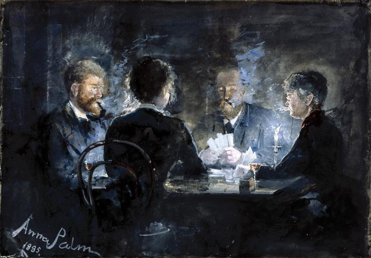 | Keywords: Anna Palm - A game of L'hombre in Brøndum's Hotel - Google Art Project.jpg commons date commons medium commons dimensions commons institution Institution Skagens Museum commons location commons references commons object_history commons exhibition_history commons credit_line commons inscriptions commons notes commons accession_number commons source commons permission commons other_versions commons zoom core title en A game of L'hombre in Brøndum's Hotel core date dateCreated 1885 core format en w52 4 x h35 6 cm Without frame core type en Gouache on paper on canvas core rights en Skagens Museum art artist_date 1859-12-25/1924-05-02 art artist_nationality en Swedish c-0d8a08e5 customtext original_title Et l'hombre-parti på Brøndums Hotel c-0d8a08e5 customtext german_title en Eine Partie l'Hombre in Brøndums Hotel c-0d8a08e5 creator painter en Anna Palm google display_date 1885 google is_artproject TRUE google is_gigapixel FALSE google is_secured TRUE google street_view_asset/id EgG8_cSw-IrjfQ google street_view_level/id 6291987383502185979 google street_view_location 57 724624633789062 10 597284317016602 0 039999999105930328 FhP4Hp9DaXJSi9TQJxP62A google partner/id 000000000d8a08e5 google picasa_token jQQSDhREX-y1MEKFgWfjj_Nk25Q special url_id PgGB34Or82p_fw google partner/name Skagens Museum special partner/name_no_lang Skagens Museum PD-old-auto-1923 1924 Google Art Project works by Anna Palm Paintings in Skagens Museum 1885 paintings Unknown painters People playing card games in art |