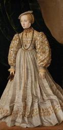 | Keywords: catherine of aragon catherineofaragon european royalty europeanroyalty portrait indoor monochrome Anna of Austria (Prague, July 7, 1528 – Munich, October 16, 1590) was the daughter of Ferdinand I, Holy Roman Emperor and his wife Anna of Bohemia and Hungary (1503–1547). She was engaged several times as a child, first to Prince Theodor of Bavaria (1526–1534), then to Charles of Orleans (1522–1545), but both died young. Anna finally married on July 4, 1546 in Regensburg at the age of 17 , Duke Albert V, Duke of Bavaria, the brother of her first fiancé. The wedding gift was 50,000 Guilder. The couple lived at the Trausnitz Castle in Landshut, until Albert became Duke. Anna and Albert had great influence on the spiritual life in the Duchy, and enhanced the reputation of Munchen as a city of art, by founding several musea and the Bayerischen Staatsbibliothek. Anna and Albert were also patrons to the painter Hans Müelich, and composer Orlando di Lasso. Anna of Austria (Prague, July 7, 1528 – Munich, October 16, 1590) was the daughter of Ferdinand I, Holy Roman Emperor and his wife Anna of Bohemia and Hungary (1503–1547). She was engaged several times as a child, first to Prince Theodor of Bavaria (1526–1534), then to Charles of Orleans (1522–1545), but both died young. Anna finally married on July 4, 1546 in Regensburg at the age of 17 , Duke Albert V, Duke of Bavaria, the brother of her first fiancé. The wedding gift was 50,000 Guilder. The couple lived at the Trausnitz Castle in Landshut, until Albert became Duke. Anna and Albert had great influence on the spiritual life in the Duchy, and enhanced the reputation of Munchen as a city of art, by founding several musea and the Bayerischen Staatsbibliothek. Anna and Albert were also patrons to the painter Hans Müelich, and composer Orlando di Lasso. |