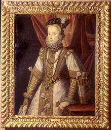 | Keywords: picture frame ancient Anna of Austria (Prague, July 7, 1528 – Munich, October 16, 1590) was the daughter of Ferdinand I, Holy Roman Emperor and his wife Anna of Bohemia and Hungary (1503–1547). She was engaged several times as a child, first to Prince Theodor of Bavaria (1526–1534), then to Charles of Orleans (1522–1545), but both died young. Anna finally married on July 4, 1546 in Regensburg at the age of 17 , Duke Albert V, Duke of Bavaria, the brother of her first fiancé. The wedding gift was 50,000 Guilder. The couple lived at the Trausnitz Castle in Landshut, until Albert became Duke. Anna and Albert had great influence on the spiritual life in the Duchy, and enhanced the reputation of Munchen as a city of art, by founding several musea and the Bayerischen Staatsbibliothek. Anna and Albert were also patrons to the painter Hans Müelich, and composer Orlando di Lasso. Anna of Austria (Prague, July 7, 1528 – Munich, October 16, 1590) was the daughter of Ferdinand I, Holy Roman Emperor and his wife Anna of Bohemia and Hungary (1503–1547). She was engaged several times as a child, first to Prince Theodor of Bavaria (1526–1534), then to Charles of Orleans (1522–1545), but both died young. Anna finally married on July 4, 1546 in Regensburg at the age of 17 , Duke Albert V, Duke of Bavaria, the brother of her first fiancé. The wedding gift was 50,000 Guilder. The couple lived at the Trausnitz Castle in Landshut, until Albert became Duke. Anna and Albert had great influence on the spiritual life in the Duchy, and enhanced the reputation of Munchen as a city of art, by founding several musea and the Bayerischen Staatsbibliothek. Anna and Albert were also patrons to the painter Hans Müelich, and composer Orlando di Lasso. |