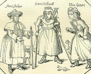 | Keywords: sketch drawing cartoon illustration indoor The Witches of Belvoir were three women, a mother and her two daughters, accused of witchcraft in England around 1619. The mother, Joan Flower, died while in prison, and the two daughters, Margaret and Philippa, were hanged at Lincoln. The story of the Belvoir witches has many classic elements of witchcraft trials. Joan and Margaret had been employed as servants by the Earl and Countess of Rutland, at Belvoir Castle near Grantham, Lincolnshire, but Margaret had been dismissed for stealing. After a series of illnesses and the death of their eldest son Lord Ross, the Earl and Countess became convinced that the mother and daughters were plotting against them, and at Christmas of 1617 or 1618 they had them arrested. The women were taken to Lincoln gaol where they were examined. Joan Flower would not confess and in an effort to prove her innocence she asked to be brought bread and butter. Before taking a bite she stated that she wished that she should choke on the food if she was not innocent of the crimes of which she stood accused. She is reported to have died after taking her first mouthful of the food. The two daughters confessed, revealing that they had entered into communion with familiar spirits that had assisted them with their schemes. The mother's familiar was a cat named Rutterkin. The women admitted that they stole the glove of Lord Ross and gave it to their mother, who had dipped it in boiling water, stroked it along Rutterkin's back, and pricked it. Combined with some incantations this supposedly caused Lord Ross to become ill and die. An attempt to harm Lady Katherine, the Earl's daughter, had failed when it was found that Rutterkin had no power over her. The women had also taken some feathers from the quilt of Rutland's bed and a pair of gloves. By boiling these in water mixed with blood they cast spells to prevent the Earl and Countess from having any more children. Both women admitted to experiencing visions of devils and that their familiar spirits visited them and sucked at their bodies. During the examination, they revealed the names of other women who had aided them, Anne Baker of Bottesford; Joan Willimot of Goodby; and Ellen Greene of Stathorne. All three women were taken for examination and revealed that they too had visions and consorted with familiar spirits. Willimott said her familiar was called Pretty and had been blown into her mouth by her former master in the form of a fairy, later reappearing in the form of a woman who asked her to give up her soul. She claimed that she only used the familiar spirit to enquire about the health of people she had attempted to heal. Greene claimed that she had accompanied Willimot into a wood where she said Willimot had conjured up two spirits in the form of a kitten and a "moldewarp" (mole) which had climbed on her shoulders and sucked at her ears. Greene sent these familiars to kill a man and woman with whom she had argued and both died within a fortnight. Baker also confessed to possessing a familiar in the form of a white dog, but most of her testimony concerned the visions she had witnessed. Margaret and Philippa were hanged in Lincoln Castle on 11 March 1618/1619. The Earl and Countess remained so convinced that their son had been killed by the effects of witchcraft that they had it inscribed on their monument at Bottesford Church. The Witches of Belvoir were three women, a mother and her two daughters, accused of witchcraft in England around 1619. The mother, Joan Flower, died while in prison, and the two daughters, Margaret and Philippa, were hanged at Lincoln. The story of the Belvoir witches has many classic elements of witchcraft trials. Joan and Margaret had been employed as servants by the Earl and Countess of Rutland, at Belvoir Castle near Grantham, Lincolnshire, but Margaret had been dismissed for stealing. After a series of illnesses and the death of their eldest son Lord Ross, the Earl and Countess became convinced that the mother and daughters were plotting against them, and at Christmas of 1617 or 1618 they had them arrested. The women were taken to Lincoln gaol where they were examined. Joan Flower would not confess and in an effort to prove her innocence she asked to be brought bread and butter. Before taking a bite she stated that she wished that she should choke on the food if she was not innocent of the crimes of which she stood accused. She is reported to have died after taking her first mouthful of the food. The two daughters confessed, revealing that they had entered into communion with familiar spirits that had assisted them with their schemes. The mother's familiar was a cat named Rutterkin. The women admitted that they stole the glove of Lord Ross and gave it to their mother, who had dipped it in boiling water, stroked it along Rutterkin's back, and pricked it. Combined with some incantations this supposedly caused Lord Ross to become ill and die. An attempt to harm Lady Katherine, the Earl's daughter, had failed when it was found that Rutterkin had no power over her. The women had also taken some feathers from the quilt of Rutland's bed and a pair of gloves. By boiling these in water mixed with blood they cast spells to prevent the Earl and Countess from having any more children. Both women admitted to experiencing visions of devils and that their familiar spirits visited them and sucked at their bodies. During the examination, they revealed the names of other women who had aided them, Anne Baker of Bottesford; Joan Willimot of Goodby; and Ellen Greene of Stathorne. All three women were taken for examination and revealed that they too had visions and consorted with familiar spirits. Willimott said her familiar was called Pretty and had been blown into her mouth by her former master in the form of a fairy, later reappearing in the form of a woman who asked her to give up her soul. She claimed that she only used the familiar spirit to enquire ab