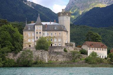Keywords: annecy lake annecy lake house water's edge castle building water sky river reflections green calm clouds former trees water courses fortress nature summer landscape france based