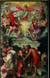 | Keywords: Annibale Carracci, Battesimo di Cristo, Chiesa dei Santi Gregorio e Siro, Bologna.jpg Artwork Creator Annibale Carracci 1580s Oil on canvas Size cm 225 383 Santi Gregorio e Siro Bologna http //www bo7 it/56-2-Avvenire-Bologna-Sette-domenica-6-gennaio-2013 html object history exhibition history credit line place of creation <gallery>Annibale Carracci The Baptism of Christ jpg</gallery> http //www bo7 it/miniature/3198/miniatura_600 jpg accession number PD-old-100 Paintings by Annibale Carracci Baptism of Jesus Christ DEFAULTSORT Carracci Baptism of Jesus Christ Santi Gregorio e Siro Bologna 16th-century oil on canvas paintings in Italy Angels with string instruments Santi Gregorio e Siro Bologna 16th-century religious paintings in Italy 16th-century paintings of the baptism of Jesus Christ Paintings of the baptism of Jesus Christ in Italy 16th-century paintings not categorised by year Uploaded with UploadWizard 16th-century paintings of angels with humans 1580s paintings by Annibale Carracci 1580s religious paintings |