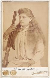 Keywords: Annie Oakley by Baker's Art Gallery c1880s.jpg Annie Oakley Cabinet Card Signed http //historical ha com/c/item zx saleNo 6032 lotNo 47014 Heritage Auctions 1880's Baker's Art Gallery Columbus Ohio PD-old Annie Oakley Cabinet cards