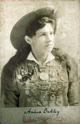 Keywords: Annie Oakley by Brisbois Chicago.jpg Annie Oakley http //www bonhams com/auctions/15425/lot/3290/ page_lots 3 upcoming_past Past Bonhams between 1891 1897 Alfred Brisbois 125 State St Chicago PD-old Annie Oakley Images from Bonhams