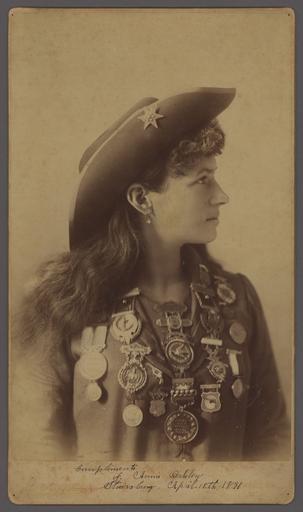 | Keywords: Annie Oakley by Percival, 1891.jpg Gelatin silver print bust portrait of Annie Oakley facing right http //www dsloan com/Auctions/A22/item-photography-oakley html dsloan auctions 1891 Anthony Percival PD-old Annie Oakley 1891 portrait photographs |
