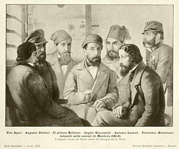 Keywords: Anon-SperiFattoriBoldriniGiacomelliLazzatiMontanari carceriMantova1853 - ca1875.jpg Tito Speri Augusto Fattori il pittore Giuseppe Boldrini Angelo Giacomelli Antonio Lazzati Francesco Montanari nelle carceri di Mantova nel 1853 ridotto e ritoccato litografia L'originale è al Museo del Risorgimento a Milano http //www ibc regione emilia-romagna it ~ 1875 author PD-old Museo del Risorgimento Milan 1853 Prisons in Italy Giuseppe Boldini Tito Speri Augusto Fattori Angelo Giacomelli Antonio Lazzati Francesco Montanari People of Mantua 1875 lithographs Retouched pictures Belfiore martyrs Mantua in art |