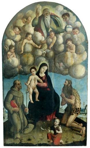 Keywords: Anônimo - Deus Pai, A Virgem, o Menino Jesus, São João Batista, São Francisco e Santo Onofre.jpg author after century 16 technique oil canvas cm 227 141 Institution Museu Nacional de Belas Artes accession number T 2421 object history Coleção Angelo Antonio Rósea credit line PVP LangSwitch Altar painting Formerly attributed to the circle of Perugino It is now thought to be closer to the manner of Marco Cardisco 1486-1542 Este retábulo era documentado anteriormente no museu como obra do círculo de Perugino Acredita-se atualmente que esteja mais próximo da maneira de Marco Cardisco 1486-1542 podendo se tratar de um seguidor deste Acervo de Obras de Arte Europeia em Coleções Brasileiras Plus Ultra http //www plusultra art br/2/detalhe asp idobra 375 info; http //www plusultra art br/2/sistema2/arquivosUpload/02421 jpg image PD-old-100 DEFAULTSORT Anonymous Onuphrius Marco Cardisco xafter Onuphrius Italian paintings in the Museu Nacional de Belas Artes 16th-century paintings in the Museu Nacional de Belas Artes 16th-century paintings of Madonna and Child with the Infant Saint John 16th-century paintings of God the Father 16th-century paintings of Francis of Assisi Altar paintings Paintings of Onuphrius Paintings with semicircular top Renaissance paintings in Brazil Renaissance paintings of saints Religious paintings in the Museu Nacional de Belas Artes Paintings of Christian saints in Brazil |