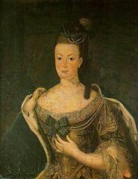 | Keywords: Anônimo - Retrato de Dona Mariana, Rainha de Portugal.JPG Artwork Creator unknown Retrato de Dona Mariana Vitória Rainha de Portugal Portrait of w Mariana Victoria of Spain 1718-1781 Queen consort of Portugal century 18 Oil on canvas cm 102 5 82 5 Museu de Arte Sacra de São Paulo São Paulo MAS catalogue Other versions PD-old-100 DEFAULTSORT 1750c; Mariana Victoria of Spain 18th-century unidentified court painters Paintings in the Museu de Arte Sacra de São Paulo Mariana Victoria of Spain 18th-century oil portraits of women at half length 18th-century portrait paintings in Brazil Baroque paintings in Brazil Ermine clothing in art Female hair fashion in art Females with clothing with pearls in art Females with golden dresses in art Hand on chest in portrait paintings Portuguese paintings in Brazil |