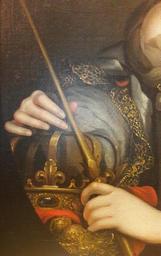 | Keywords: Anonymous Marie Casimire Sobieska with a nipple visible (detail) 01.jpg Artwork Anonymous workshop of between 1673 1675 oil canvas Institution Warsaw Royal Castle Princes' Apartments accession number ZKW 65 object history credit line Dorota Juszczak Hanna Małachowicz 2007 Zamek Królewski w Warszawie malarstwo do 1900 katalog zbiorów Zamek Królewski w Warszawie ISBN 83-70221-68-8 cat no 395 own PD-old-100 DEFAULTSORT 1673-1675; Marie Casimire Portrait of Queen Marie Casimire Sobieska with a nipple visible |
