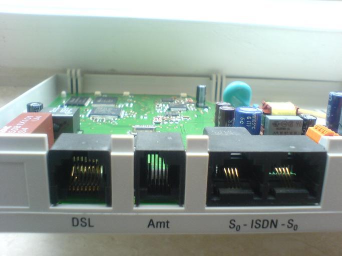 | Keywords: Anschlüsse für DSL, Amt und ISDN.JPG Anschlüsse für DSL Amt und S<sub>0</sub> ”ISDN ”S<sub>0</sub> an einem Sphairon-DSL-Splitter NT 1 Plus-Arcor Bj ca 2006 own 2008 User Mattes DSL splitters Work by Mattes 2008 Modular connectors Arcor User Mattes/Contributions/Topics/Technology Sphairon Taken with Sony Ericsson W810 |