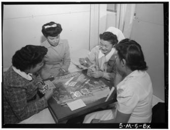 | Keywords: Ansel Adams Manzanar - Bridge game, Nurse Aiko Hamaguchi, Nurse Chiye Yam - LOC ppprs-00106.jpg en Original caption Bridge game Nurse Aiko Hamaguchi Nurse Chiye Yamanaki Miss Catherine Yamaguchi Miss Kazoko Nagahama Manzanar Relocation Center California 1943 LangSwitch From the http //www loc gov/pictures/collection/manz/ Ansel Adams's Photographs of Japanese-American Internment at Manzanar collection at the http //loc gov Library of Congress ppprs 00106 Creator Ansel Adams This collection is in the public domain but privacy and publicity rights may apply When images are reproduced in a publication the Library requests that the reproduction number be published with the credit as in the following example Library of Congress Prints and Photographs Division LC-A35-4-M-10 http //www loc gov/rr/print/coll/109_anse html Ansel Adams Photographs by Ansel Adams of Manzanar War Relocation Center |