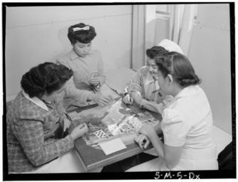 View Original:Ansel Adams Manzanar - Bridge game, Nurse Aiko Hamaguchi, Nurse Chiye Yam - LOC ppprs-00108.jpg (5120x3910)