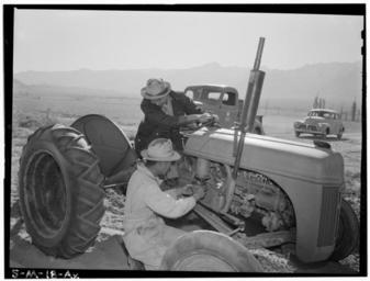 | Keywords: Ansel Adams Manzanar - Tractor repair- Driver Benji Iguchi, Mechanic Henr - LOC ppprs-00118.jpg en Original caption Tractor repair Driver Benji Iguchi Mechanic Henry Hanawa Manzanar Relocation Center California 1943 LangSwitch From the http //www loc gov/pictures/collection/manz/ Ansel Adams's Photographs of Japanese-American Internment at Manzanar collection at the http //loc gov Library of Congress ppprs 00118 Creator Ansel Adams This collection is in the public domain but privacy and publicity rights may apply When images are reproduced in a publication the Library requests that the reproduction number be published with the credit as in the following example Library of Congress Prints and Photographs Division LC-A35-4-M-10 http //www loc gov/rr/print/coll/109_anse html Ansel Adams Photographs by Ansel Adams of Manzanar War Relocation Center Ford N series Tractor drivers |