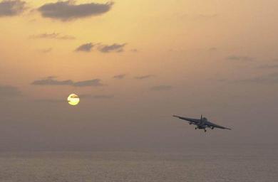 Keywords: Sea Control Squadron S-3B Viking flight deck aboard sunset