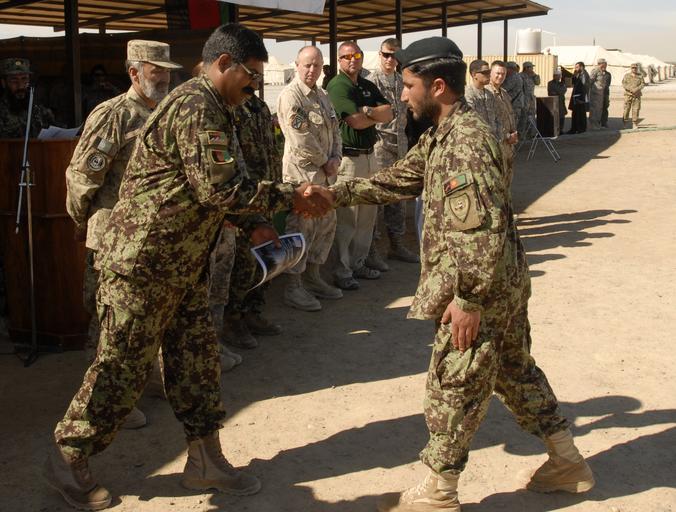 Keywords: ANSF Graduate from Courses at RMTC DVIDS375435.jpg en An Afghan National Army soldier receives his certificate for completing the Up Armored HMMWV course at Regional Military Training Center from Col Haroon the RMTC's Commanding Officer at RMTC in Kandahar Afghanistan The graduation ceremony was for student the completed the Up Armored HMMWV course Literacy course and Medic course from RMTC and the students were from the Afghan National Army Afghan Air Force Afghan Uniformed Police and Afghan National Civil Order of Police 2011-03-10 Petty Officer 2nd Class David Kolmel https //www dvidshub net/image/375435 110310-N-+++++-005 2011-03-10 06 43 REGIONAL MILITARY TRAINING CENTER AF PD-USGov-Military-Navy Soldiers of the Afghan National Army Images from DoD uploaded by Fæ |