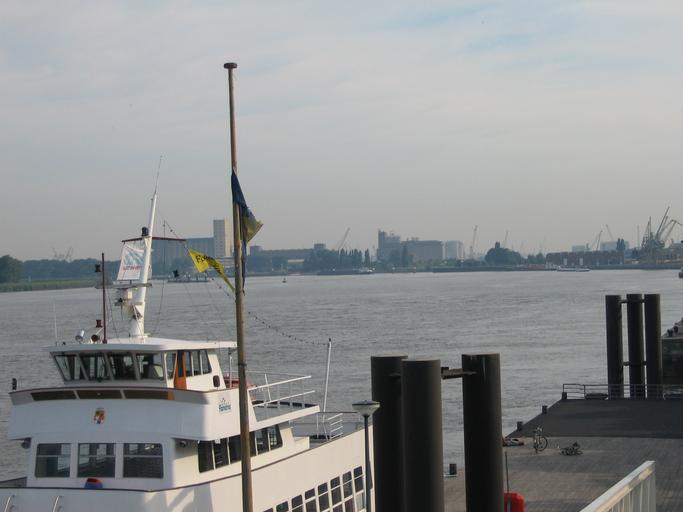 Keywords: Ant por.JPG fr Un navire de croisière amarré l'Escaut Schelde et installations portuaires au loin Anvers/Antwerpen Belgique Own Julien Bertrand 2005-07-15 Unidentified watercraft