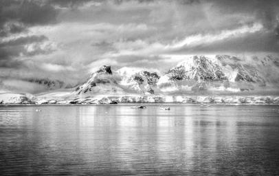 Keywords: antarctica black and white nature ice south pole climate outdoor snow cold mountains foggy clouds snowy white continent frozen