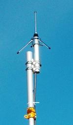 | Keywords: Antenna UHF 01.JPG fr L'antenne ground plane UHF 450 MHz à 470 MHz ou GPA Ground Plane Antenna est un dipôle dans lequel on a remplacé la moitié par un « plan de sol » la moitié conservée étant normale à cette surface Si le plan de sol est suffisamment grand le demi-dipôle se comporte exactement comme un dipôle entier type dipôle demi-onde λ/2 car sa réflexion dans le plan de sol forme la partie manquante La longueur physique est environ égale au quart de la longueur d'onde de la fréquence sur laquelle l'antenne est accordée Ces brins disposés en cercle inclinés vers le bas ; en nombre de 3 ils constituent une surface conductrice de l'électricité même si cette surface n'est pas parfaite pour être alimenté par un câble coaxial de 50 ohms A UHF ground plane antenna for 450 MHz to 470 MHz The vertical whip is approximately one quarter of the wavelength of the radio waves and functions as a quarter-wave en monopole antenna The three downward pointing quarter wave whips extending from the base of the vertical function as a ground plane for the monopole They create an electrical image of the top whip on the other side of the ground plane The two antennas the monopole and its image are together equivalent to a half-wave dipole antenna so the radiation pattern of the ground plane antenna is the same as the top half of the pattern of the half wave dipole It is omnidirectional radiating maximum power in horizontal directions with the power declining with elevation angle to zero on the antenna's axis The maximum gain is twice 3 dB more than that of a half wave dipole's 2 19 dBi or 5 19 dBi If the ground plane wires extended out horizontally from the base of the monopole the impedance would be half that of the dipole or 36 5 ohms However the downward slant of the ground plane wires serves to increase the antenna impedance so the antenna is a good match for the 50 ohm coaxial cable feedline 2012-10-07 09 10 06 own F1jmm picture manager bright F1jmm Uploaded with UploadWizard Monopole antennas Photos by User F1jmm |