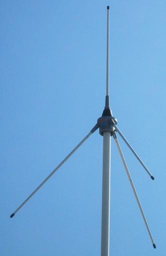 | Keywords: Antenne gp vhf 1.jpg L'antenne ground plane VHF 156 MHz à 162 MHz ou GPA Ground Plane Antenna est un dipôle dans lequel on a remplacé la moitié par un « plan de sol » la moitié conservée étant normale à cette surface Si le plan de sol est suffisamment grand le demi-dipôle se comporte exactement comme un dipôle entier type dipôle demi-onde λ/2 car sa réflexion dans le plan de sol forme la partie manquante Dans ce cas son gain théorique est de 2 14 dBi où les dBi sont des décibels avec un « i » ajouté pour rappeler qu'il s'agit d'un gain par rapport à une antenne isotrope la longueur physique est environ égale au quart de la longueur d'onde de la fréquence sur laquelle l'antenne est accordée Ces brins disposés en cercle inclinés vers le bas ; en nombre de 3 ils constituent une surface conductrice de l'électricité même si cette surface n'est pas parfaite pour être alimenté par un câble coaxial de 50 ohms A VHF ground plane antenna for 156 to 162 MHz The vertical wire functions as a quarter-wave monopole antenna while the downward sloping wires serve as a ground plane for the monopole The downward slope of the ground plane wires serves to increase the characteristic impedance of the antenna to make it a good match for the 50 ohm coaxial cable feedline own ¢ self-photographed 2010-09-28 F1jmm picture manager bright F1jmm Monopole antennas Photos by User F1jmm |