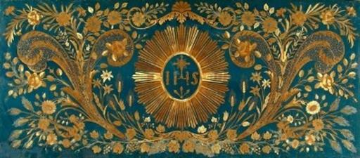 | Keywords: Antependium (straw).jpg ligure seconda metà del XVIII secolo  ; Paliotto di paglia naturale ritagliata e incollata su tela blu e che è decorata tutta di paglia naturale 88 × 201cm Conservato al museo di Vita Cappuccina Genova - Italia ligure deuxième moitié du XVIII siècle  Antependium de paille naturelle découpée et collée sur une base de papier rapportée sur une toile bleue Il est décoré entièrement de paille naturelle 88 × 201cm Conservé au musée de Vita Cappuccina Gênes “ Italie 2012-11-13 14 12 10 http //www bccgenova it/Paliotti html Museo dei Beni Culturali Cappuccini di Genova author Custom license marker 2012 11 13 PD-art-100 Uploaded with UploadWizard 18th-century antependia Genoa |