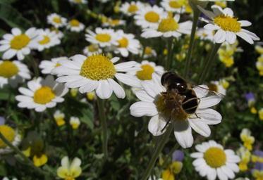 Keywords: Anthemistomentosa.jpg en Anthemis tomentosa with pollinator in the UC Botanical Garden Berkeley California USA Identified by sign own Stickpen 2010-05-20 public domain Anthemis tomentosa