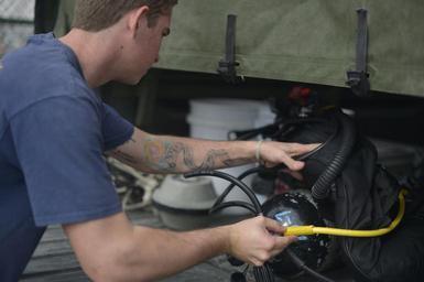 | Keywords: Anti-Terrorism-Force Protection 130109-N-GG400-032.jpg en Navy Diver 3rd Class Travis Neel assigned to Mobile Diving and Salvage Unit 2 Company 2-2 loads a truck with dive gear after an inspection dive MDSU 2 is assigned to Commander Task Group 56 1 promoting mine countermeasure explosive ordnance disposal salvage-diving and force protection in the U S 5th Fleet area of responsibility U S Navy photo by Mass Communication Specialist 3rd Class Jumar T Balacy/Released 2013-01-09 Petty Officer 3rd Class Jumar Balacy https //www dvidshub net/image/813801 130109-N-GG400-032 2013-01-13 15 39 MINA SALMAN PORT BH PD-USGov-Military-Navy United States Navy Mobile Diving and Salvage Unit Two Images from DoD uploaded by Fæ |